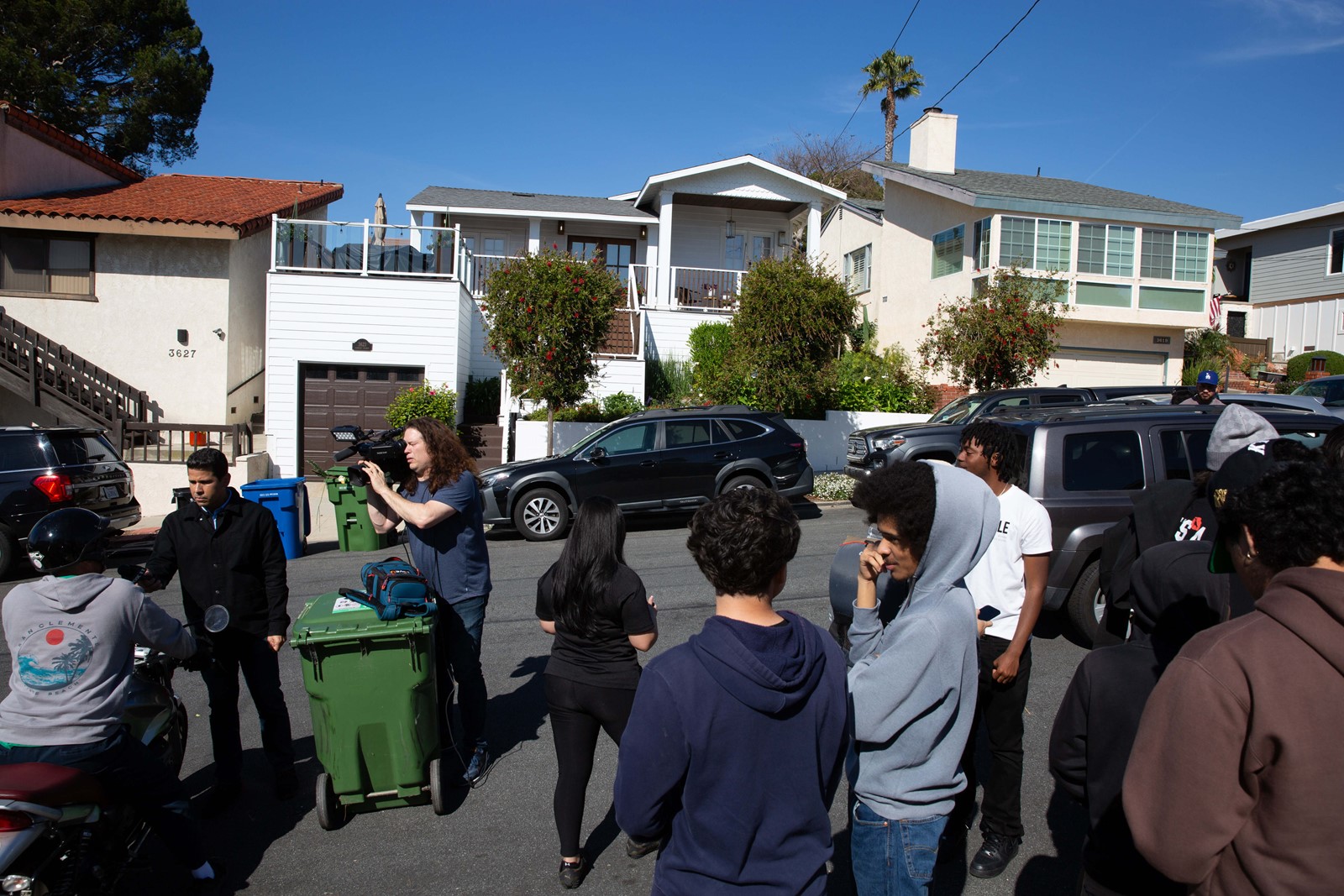 Reporters, students and local residents gather outside of Los Angeles Unified School District Superintendent Alberto Carvalho's home, which was raided by FBI agents in San Pedro on Wednesday. Photo by Raphael Richardson.